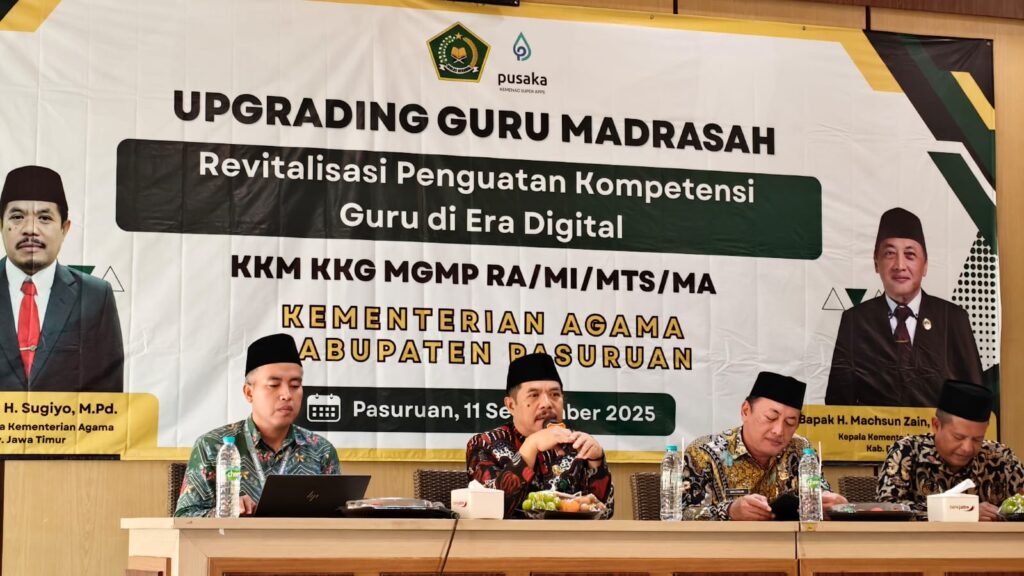 PASURUAN, DIALOGMASA.com – Sebanyak 100 guru dari jenjang RA, MI, MTs, dan MA di Kabupaten Pasuruan mengikuti kegiatan Upgrading Guru Madrasah bertema Revitalisasi Penguatan Kompetensi Guru di Era Digital di RM Kebon Pring, Kamis (11/9/2025).
