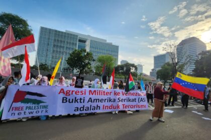 Free Palestine Network Gelar Aksi Solidaritas untuk Venezuela di Depan Kedubes AS