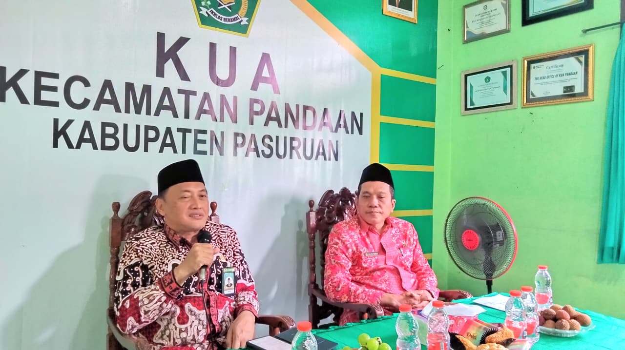 Dalam kesempatan tersebut, Kepala KUA Pandaan H. Ali Shodiqin menyampaikan ucapan terima kasih atas kehadiran Kepala Kemenag serta menjelaskan kondisi KUA Pandaan.