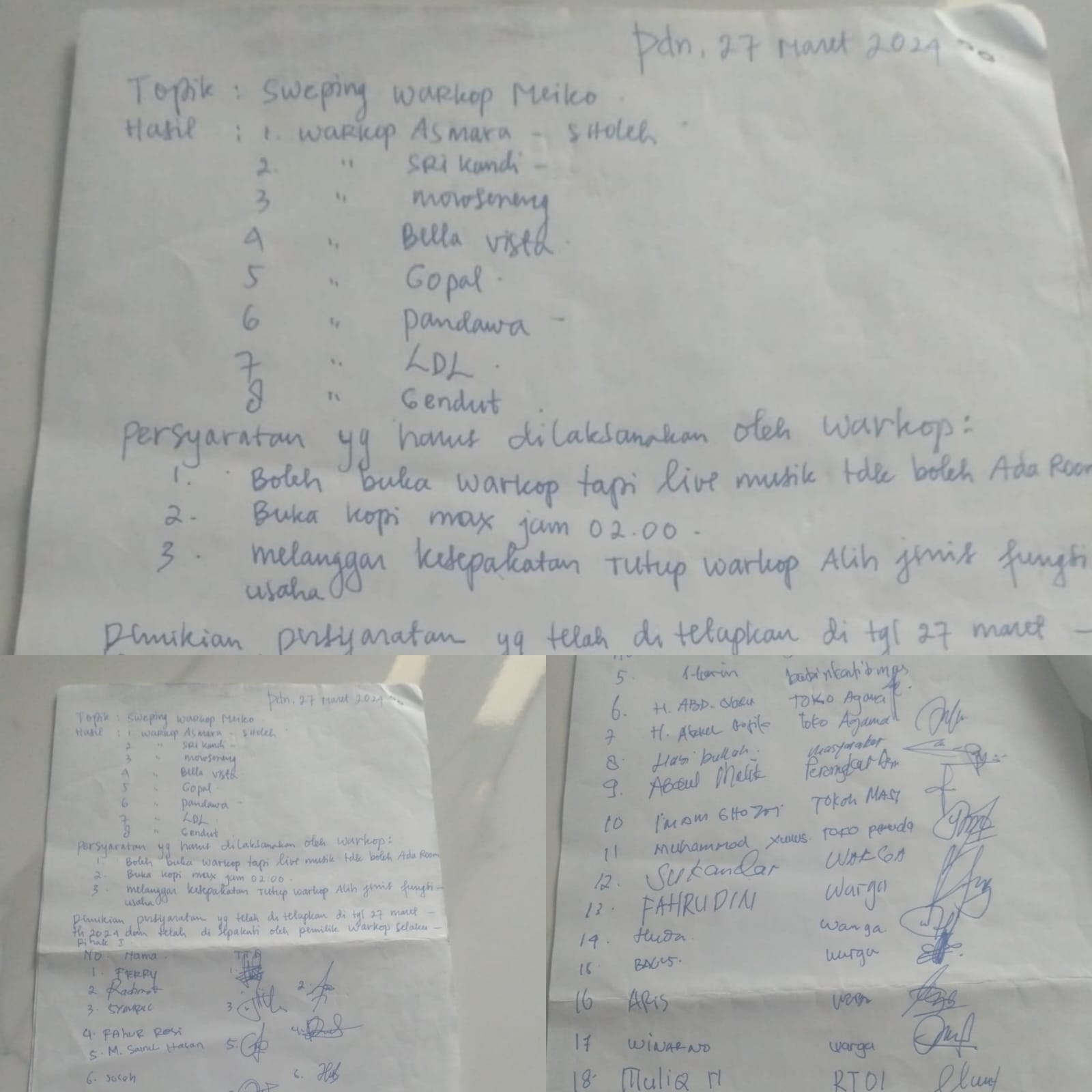 “Jadi mohon dibaca pernyataan itu dan mereka melanggar semuanya warga jadi rame silahkan buka Warkop tapi seperti giras,” imbuhnya.