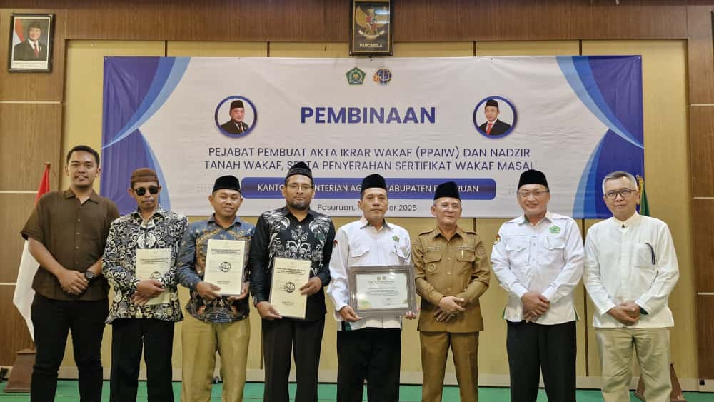 Melalui kegiatan ini, pemerintah daerah bersama Kemenag dan BPN berkomitmen mempercepat penyelesaian seluruh berkas sertifikasi tanah wakaf di Kabupaten Pasuruan, demi memberikan kepastian hukum dan perlindungan bagi aset umat. (AL/WD)