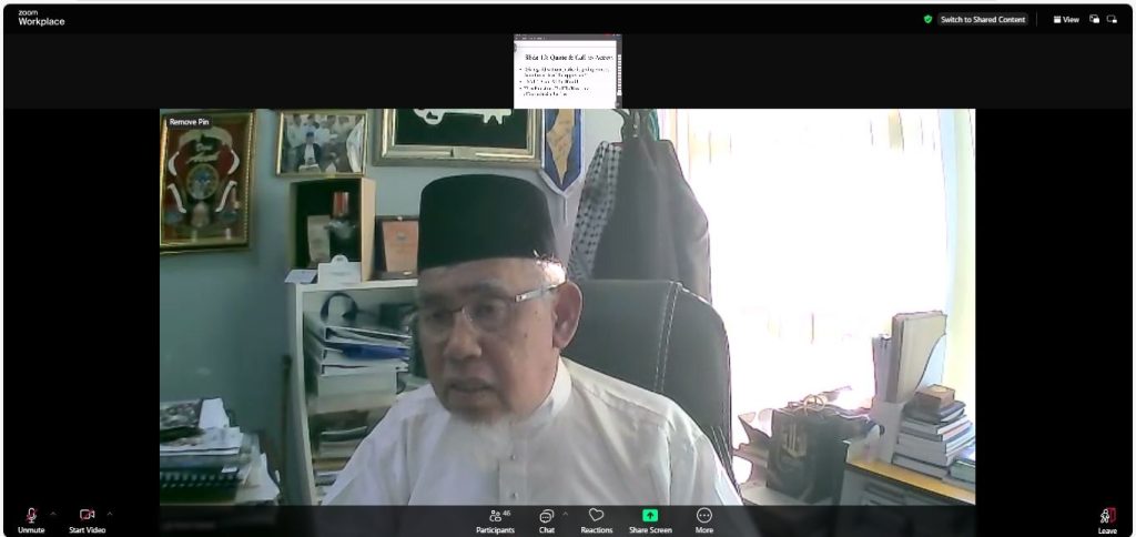 Dalam pemaparannya, Dr. Azmi Abdul Hamid menekankan bahwa isu bantuan kemanusiaan ke Palestina tidak dapat dipisahkan dari dinamika politik global dan dominasi kekuatan besar.