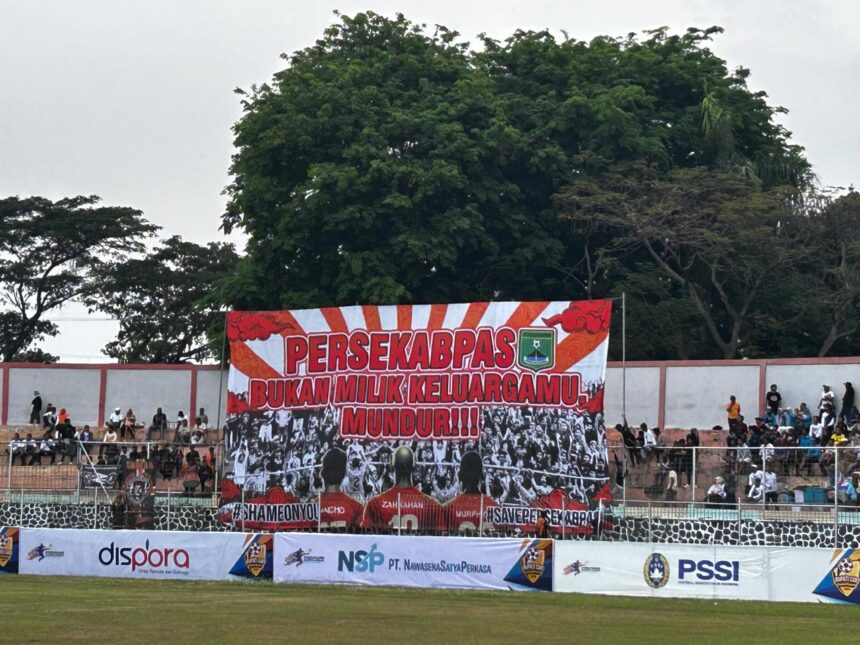 Baliho Kontroversial Bertuliskan “Persekabpas Bukan Milik Keluarga” Terpasang Saat Final Bupati Cup 2025