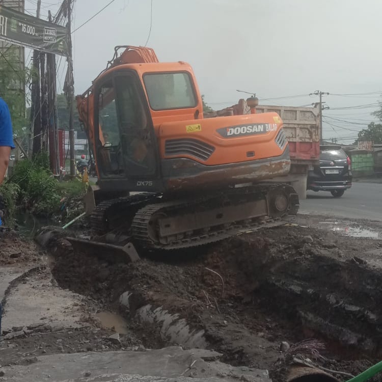 Perbaikan berlangsung dua hari, Sabtu hingga Minggu (08–09/11), dengan menggunakan satu unit excavator untuk membongkar struktur lama serta membersihkan endapan lumpur dan sampah di saluran irigasi. Penanganan cepat diperlukan mengingat lokasi berada di tepi jalan nasional dengan arus lalu lintas yang padat.