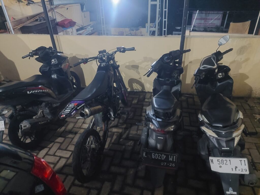 Selain sajam, polisi juga mengamankan empat unit sepeda motor milik para terduga, serta empat ponsel sebagai barang bukti tambahan.
