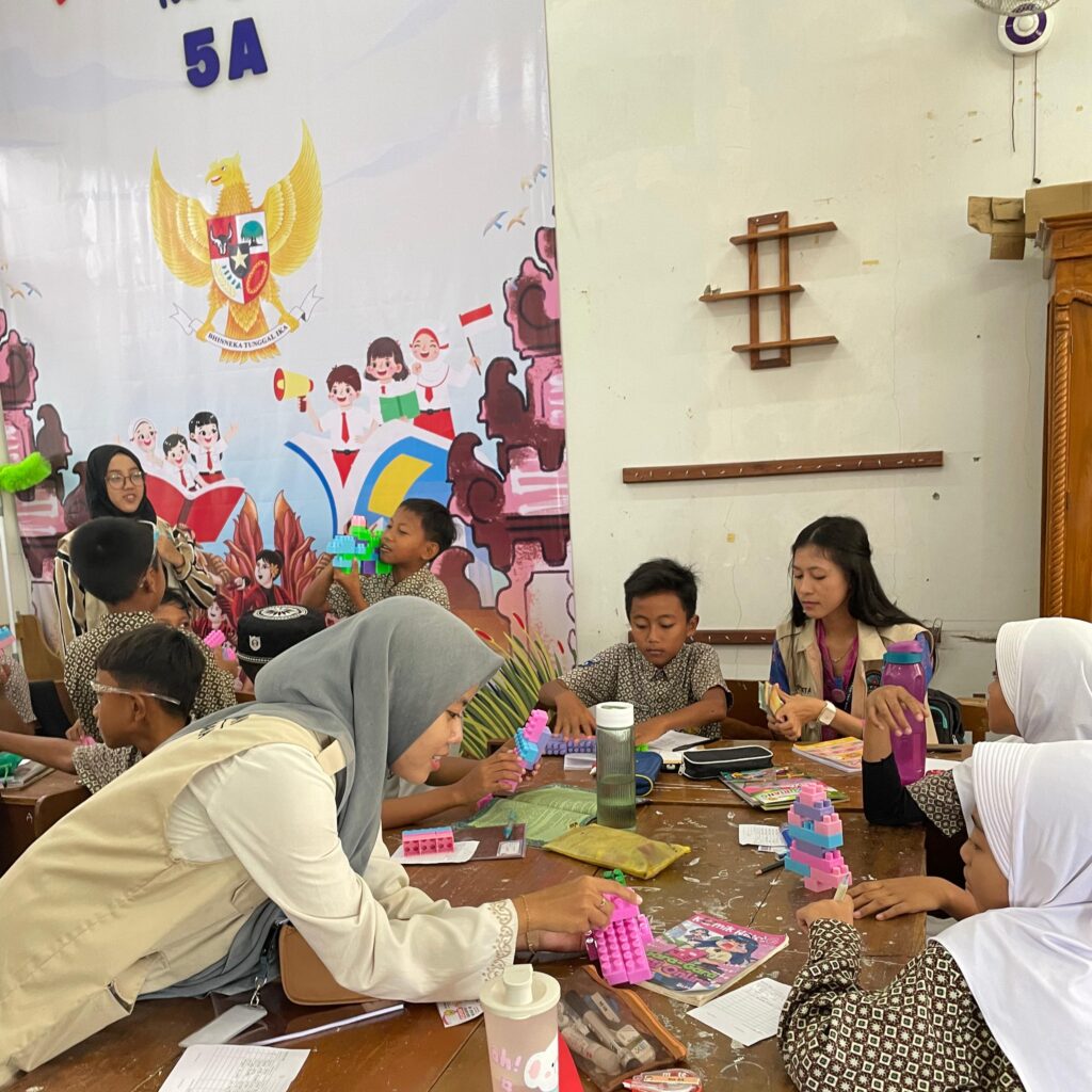 Kegiatan ini menghadirkan simulasi belanja dengan media balok LEGO dan uang mainan untuk melatih siswa kelas 5 dalam memahami matematika dasar.