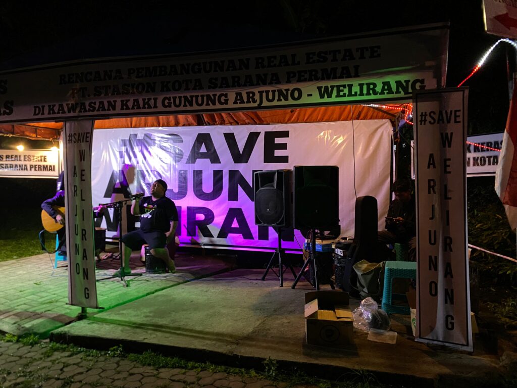 “Acara tadi malam adalah salah satu upaya warga lereng Gunung Welirang untuk menolak keras pembangunan real estat oleh PT Stadion Kota Sarana Permai. Tujuannya agar suara penolakan kami meluas dan mendorong masyarakat luas ikut bersuara,” ujarnya.